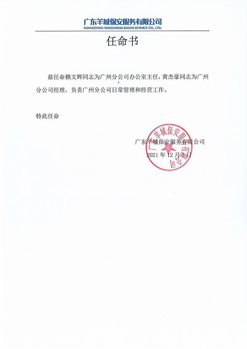 星空体育·星空网站官网-星空online(中国)关于黄杰豪与赖文辉的任命书正式通知
